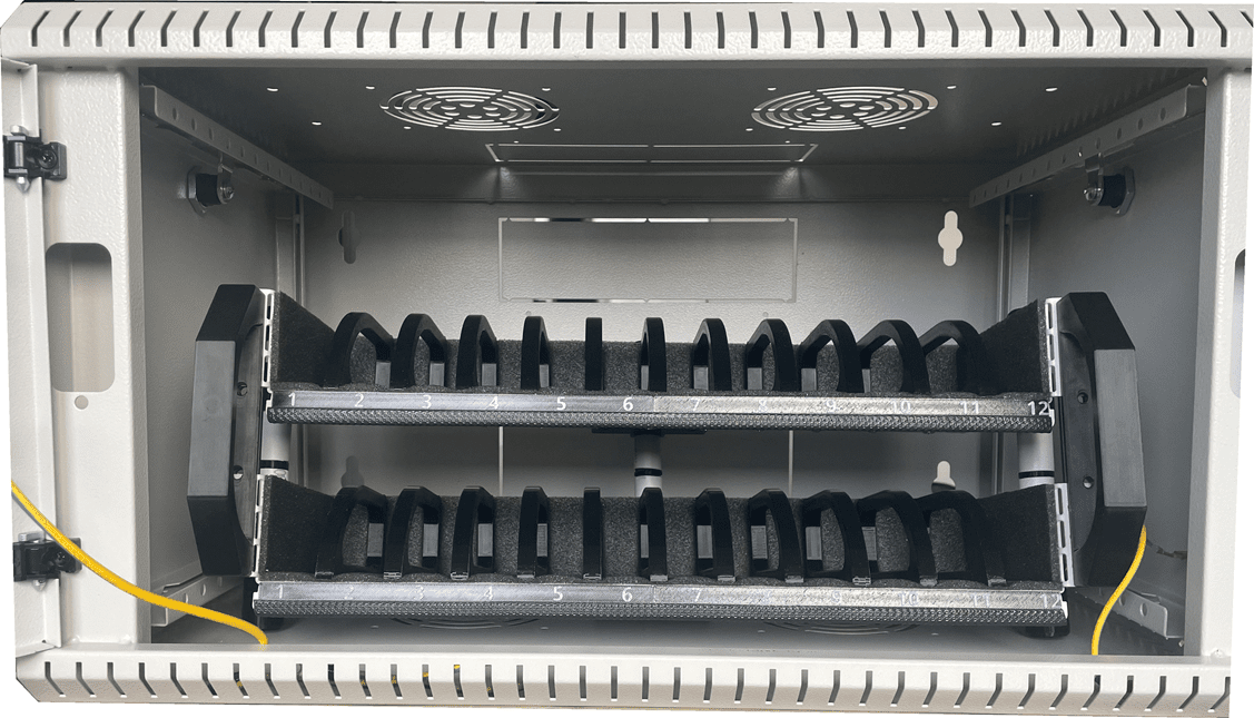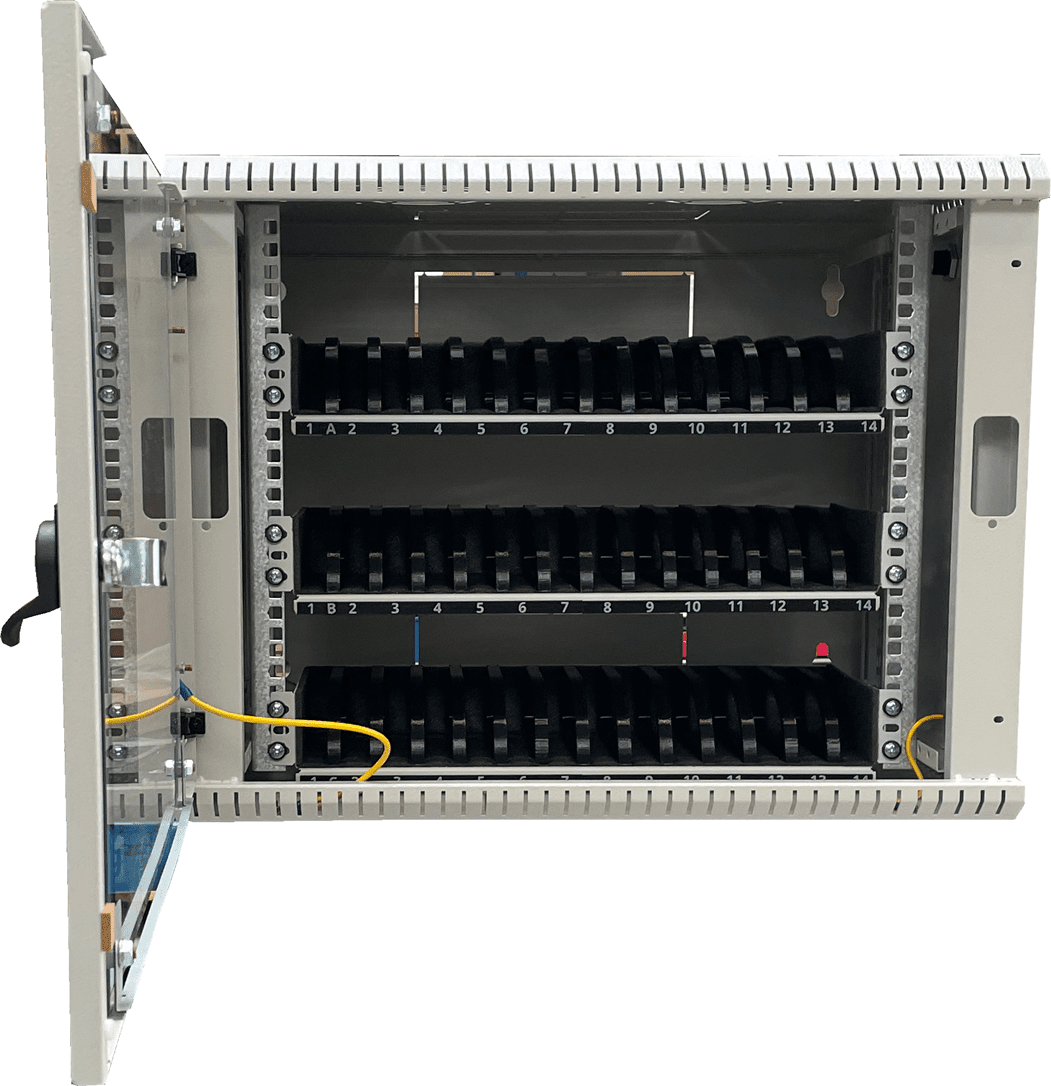 Das hochwertige 19" Wandgehäuse mit 6 oder 9HE ist die ideale Wahl für alle, die Smartphone- oder Tablet-Komponenten sicher und platzsparend installieren möchten. Das vormontierte Stahlblechgehäuse überzeugt durch eine stabile Konstruktion mit geschweißtem Rahmen und einer eleganten frontseitigen Glastür aus zertifiziertem 4-mm-Sicherheitsglas.