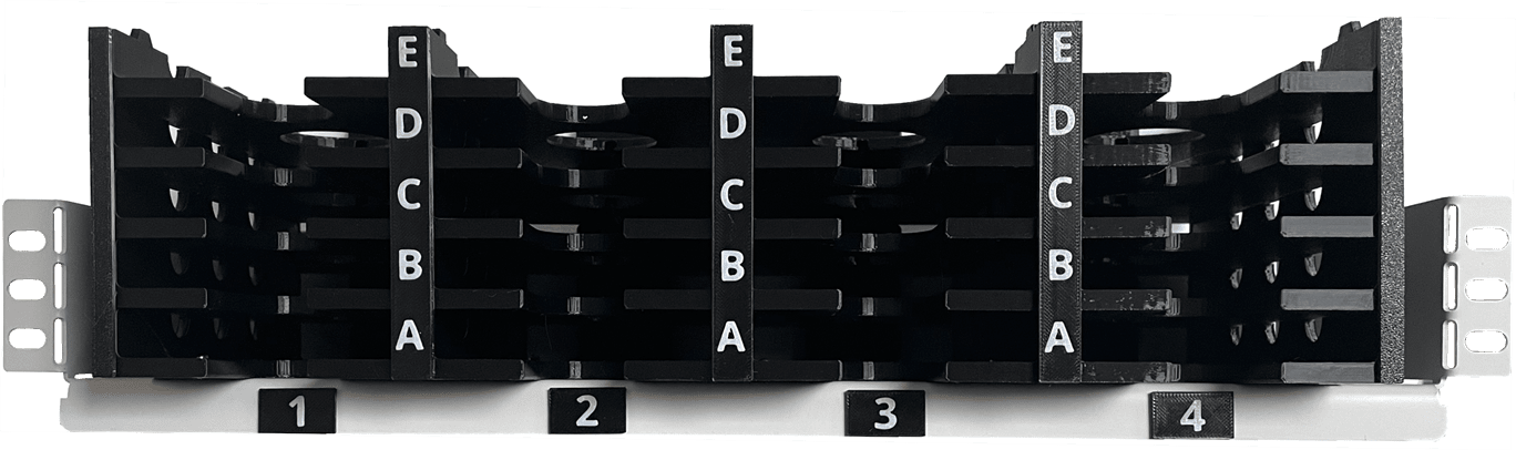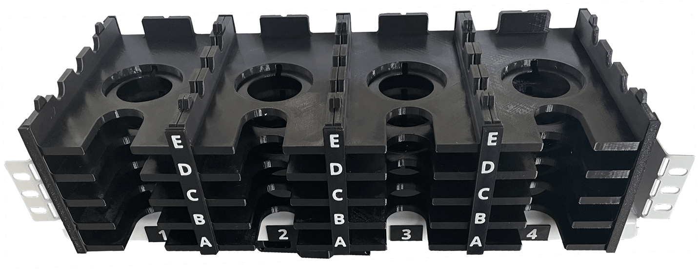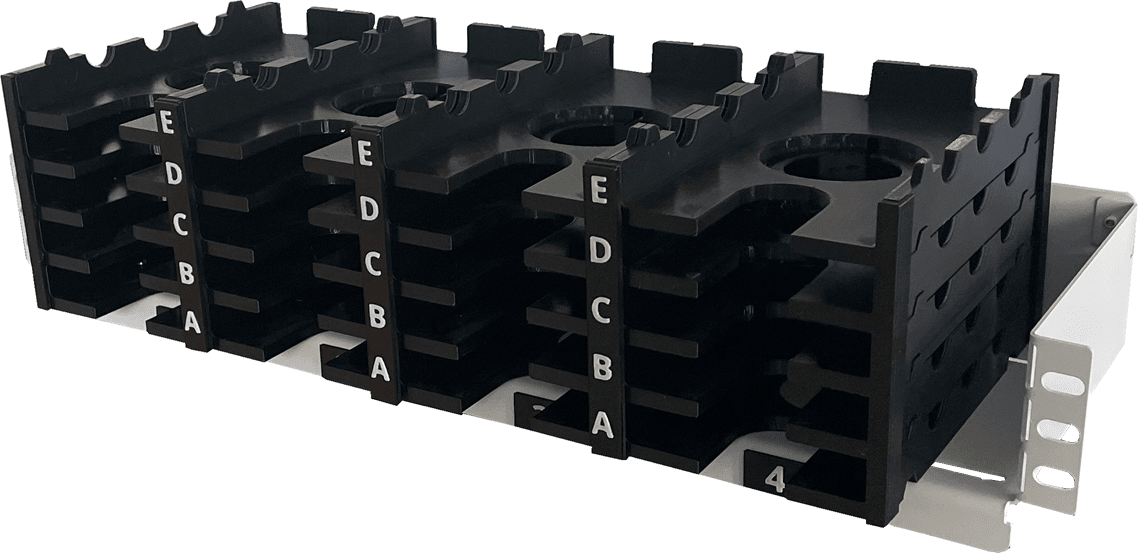 Es lässt sich nahtlos in jeden genormten 19"-Serverschrank integrieren und stellt zwanzig separate Ablagefächer zur Verfügung.